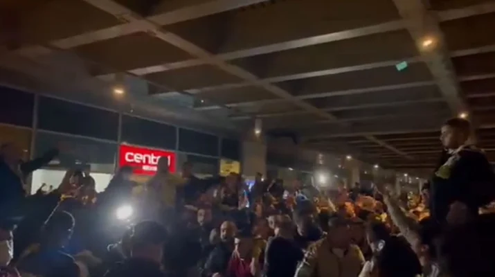 Polisin yoğun güvenlik önlemi aldığı Sabiha Gökçen Havalimanı’nda bir araya gelen yüzlerce taraftarlar, meşaleler yakıp, açtıkları pankartlar ve tezahüratlarla takımlarına destek oldu. Trabzonspor maçında görev alan hakem Ali Şansalan’a tepkilerini dile getiren sarı-lacivertli taraftarlar, Şansalan aleyhinde tezahüratlarda bulundular.