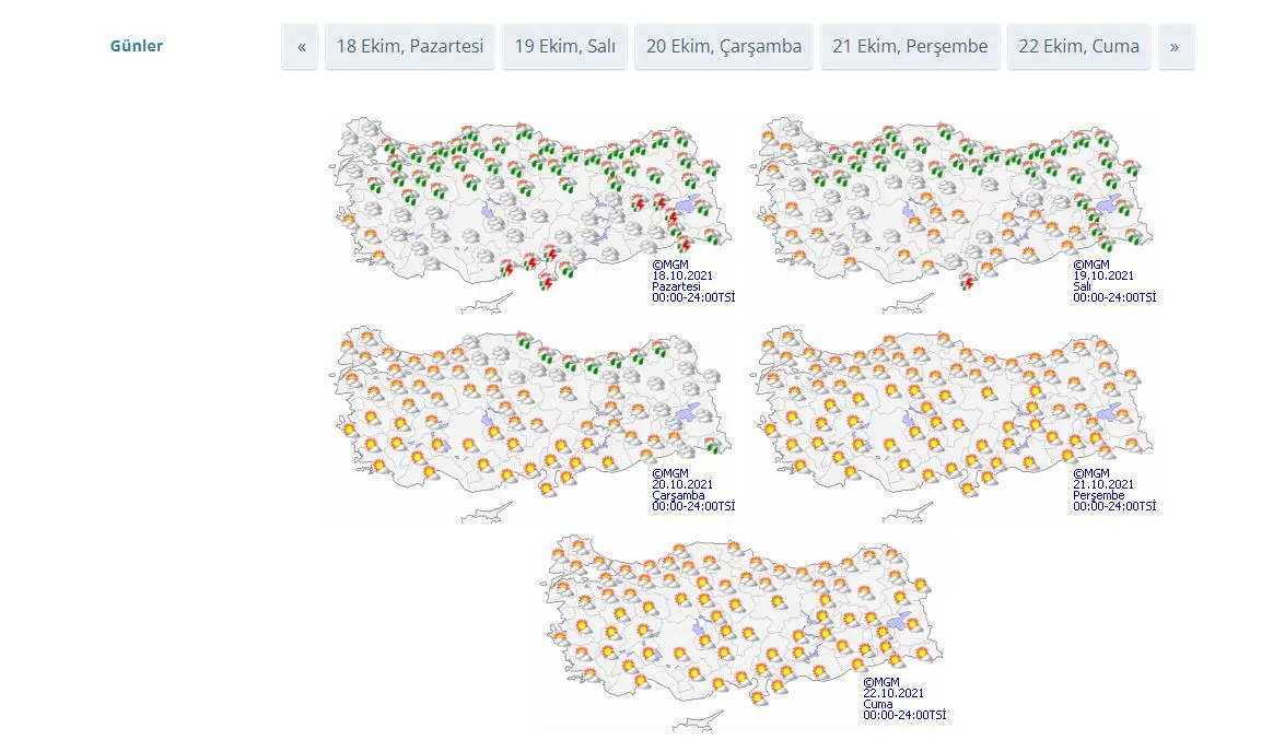 5 GÜNLÜK HAVA TAHMİN RAPORU HARİTASI