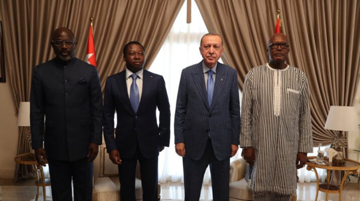 Cumhurbaşkanı Recep Tayyip Erdoğan, Afrika turunun ikinci durağı Togo’da Cumhurbaşkanı Faure Essozimma Gnassingbe ile baş başa ve heyetler arası görüşmelerinin ardından ortak basın toplantısı düzenlemiş, toplantının ardından Cumhurbaşkanı Erdoğan, Togo Cumhurbaşkanı Gnassingbe, Burkina Faso Devlet Başkanı Christian Kabore ve Liberya Devlet Başkanı George Manneh Weah ile bir araya gelmişti.