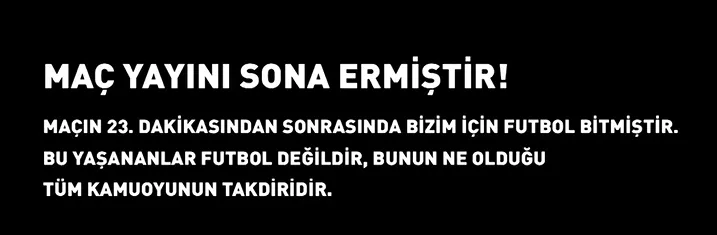 FB TV’de yayınlanmaya başlayan maç tekrarı, Kim Min-jae’nin kırmızı kart gördüğü 23. dakikada kesildi ve ekran karartılarak, “Maçın 23. dakikasından sonrasında bizim için futbol bitmiştir. Bu yaşananlar futbol değildir, bunun ne olduğu tüm kamuoyunun takdiridir.” mesajı yayımlandı.