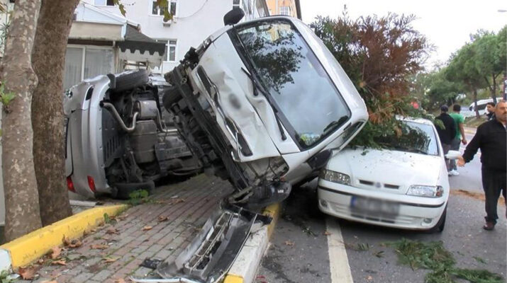 Bir fidanlık işletmesine ait 34 NL 4432 plakalı kamyonet, ağaç dalları yüklü halde park halindeyken iddiaya göre freni boşalarak yokuş aşağı gitmeye başladı. Yolda seyir halindeki araçların yanından geçerek, yaklaşık 1 kilometre ilerleyen kamyonet, yol kenarında park halinde bulunan 4 otomobile vurduktan sonra kaldırımda bulunan ağaca çarparak yan yattı.