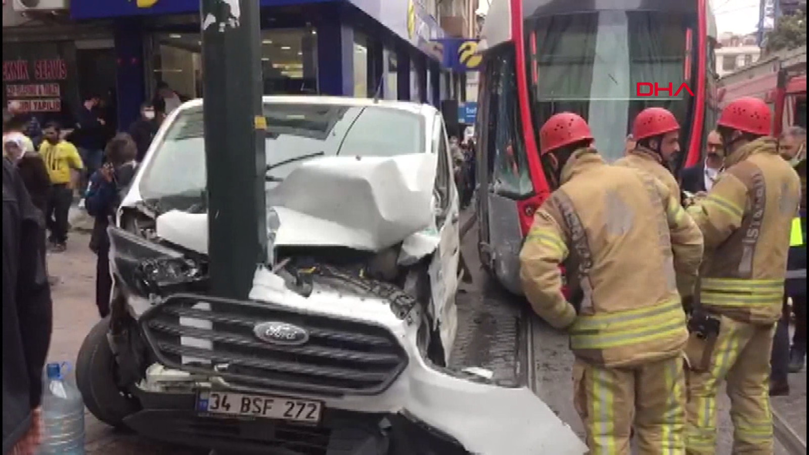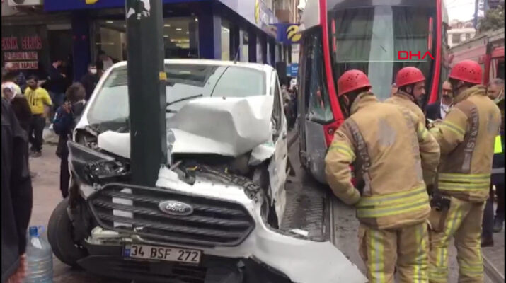 Zeytinburnu’nda tramvayın araca çarptığı anlar kamerada