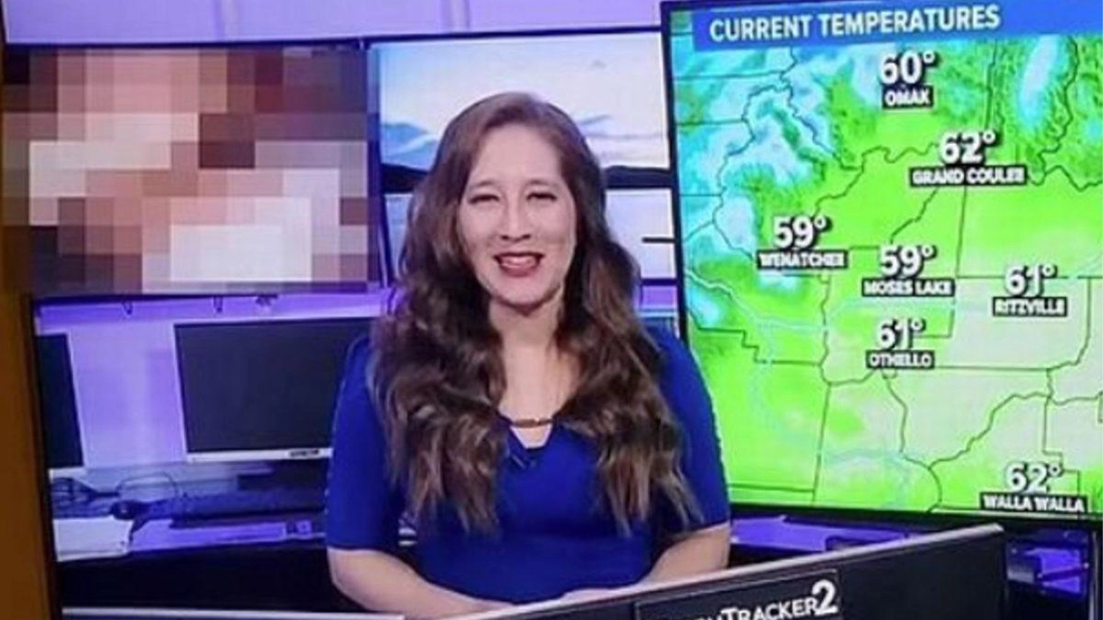 İzleyenleri şaşkına çeviren videoda, hava durumunu anlatan bir sunucunun arka planında cinsel içerikli film ekranlara yansıdı.