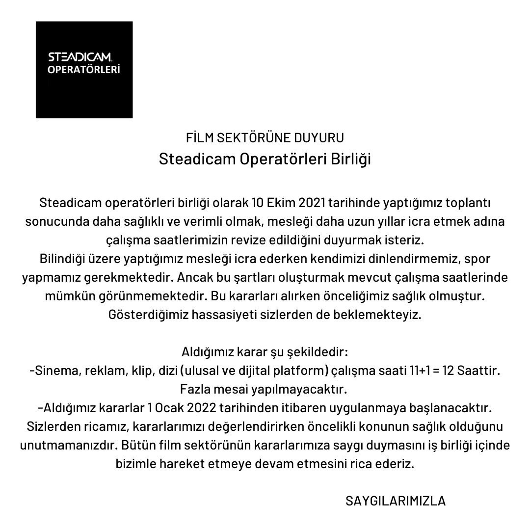 Sinema, Reklam, Dizi ve Televizyon Programı Çalışanları Sendikası tarafından Twitter’dan yapılan açıklamada şu ifadeler yer aldı:
