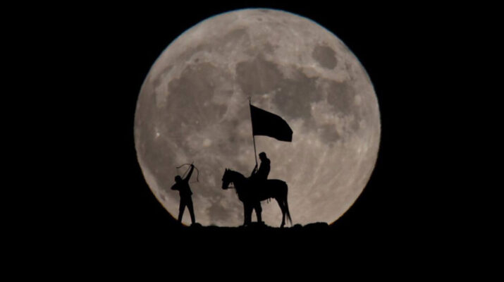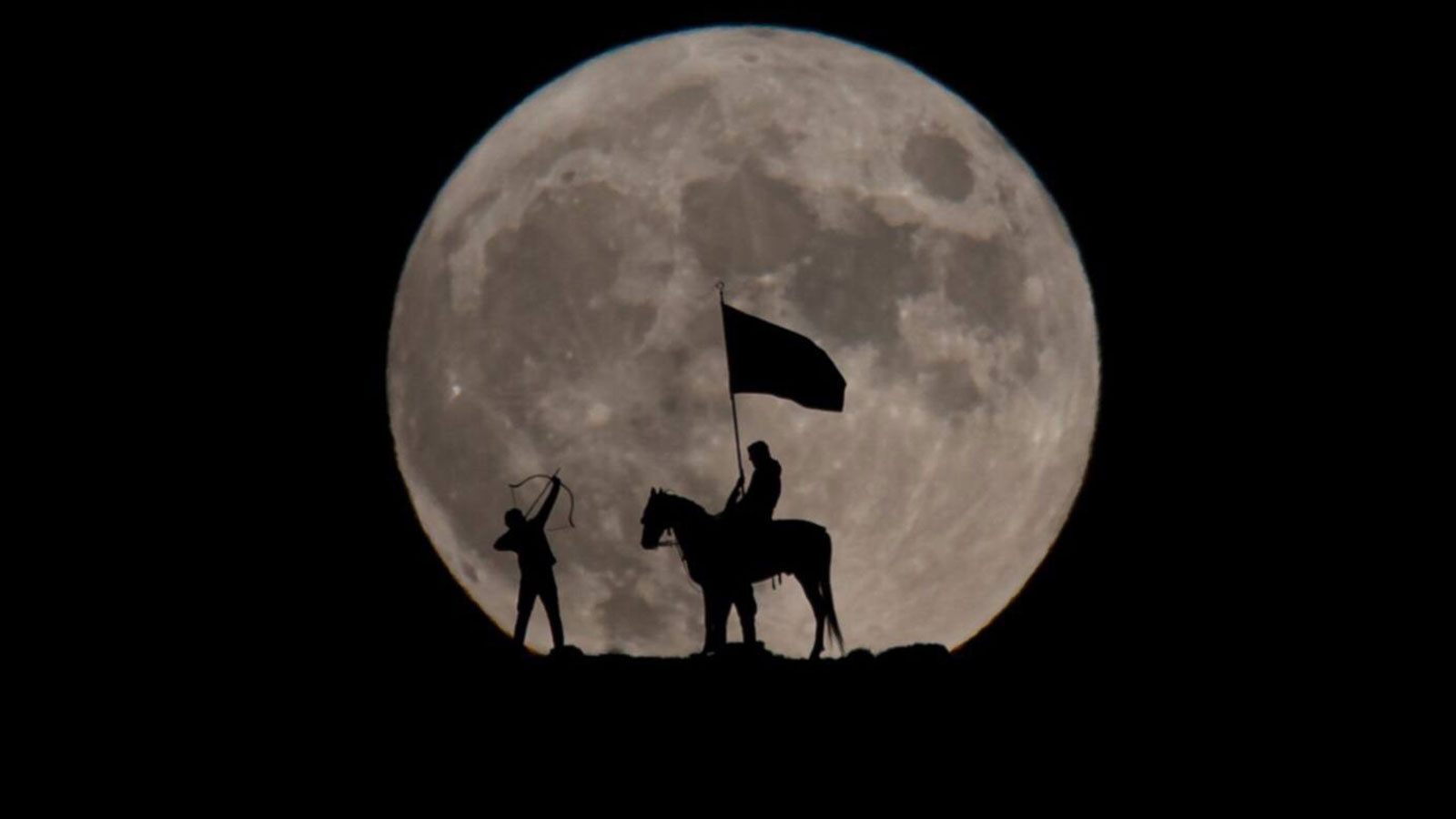 Dolunayın önüne at, bayrak, okçu gibi objeler koyarak, dolunayı Aslandağı piknik alanından farklı açılardan görüntüleyen fotoğraf tutkunları, seyrine doyumsuz görüntüler çekti.