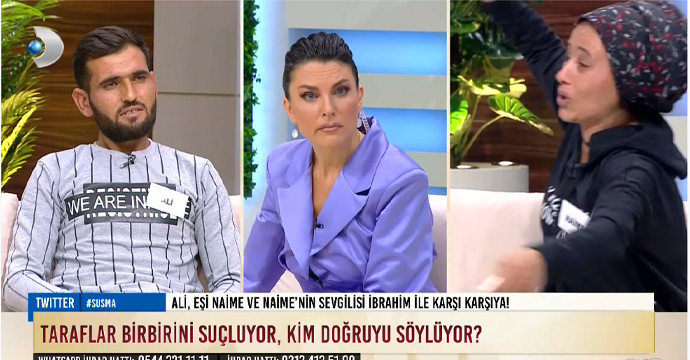 Kanal D ekranlarında sabah kuşağında yayınlanan Ece Üner’in sunduğu “Ece Üner İle Susma”da Ali, Naime ve İbrahim arasında beklenen yüzleşme gerçekleşti.