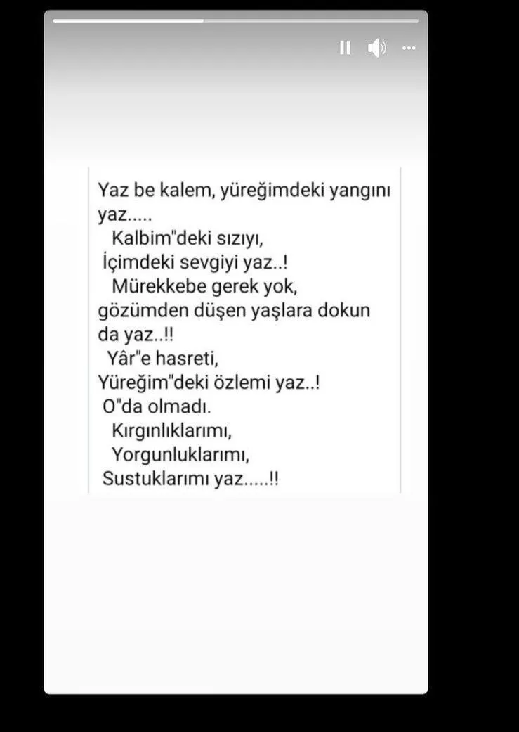 Sabah’ın haberine göre, bir dönem Türkiye’nin gündemine oturan elti Hamide Duman ise sosyal medyadaki şiir paylaşımlarıyla şaşırttı.