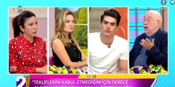 Özerman, geçmiş yıllarda “Kıvanç Tatlıtuğ’un çıplak fotoğraflarının kasasında olduğu” açıklamalarının hatırlatılması üzerine, programın sunucularından Müge Dağıstanlı’ya “Geçmiş yıllarda neden o fotoğrafları istedin o zaman?” deyince stüdyoda sesler yükseldi.