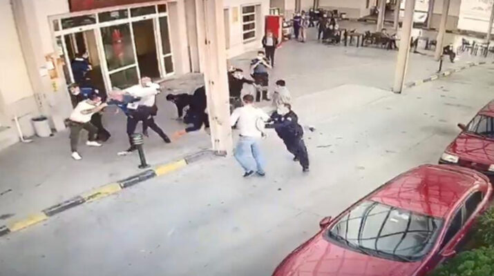 Öte yandan, hastane önünde yaşanan arbede saniye saniye güvenlik kamerasına yansıdı. Görüntülerde; sağlık kontrolü için getirildikleri hastanede iki gurubun arasında kavga çıkması, o sırada Cesur Kocaman’ın polis memurunun belinden aldığı tabancayla çevreye rastgele ateş açması yer aldı.