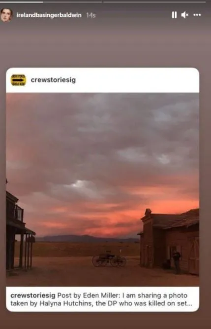 “Bugün sette öldürülen Halyna Hutchins tarafından çekilmiş bir fotoğrafı paylaşıyorum. Gökyüzünün bu güzel fotoğrafını 10 gün önce setinde çekti. Hikâye ilerledikçe, kusur ve suçlama hakkında bir sürü parmakla işaret edip bağıranların olacağından eminim ama kimsenin işe gidip kazara meslektaşını öldürmek istemediğini hatırlamaya çalışın. Kimse arkadaşını bir kazada kaybetmek istemez. Bu millet yas tutuyor ve ne olduğu hakkında soruşturma için zaman olacak. Ama şimdilik, bizden biri öldü ve bizimkilerden biri, dolaylı da olsa kazara bu ölüme neden oldu. Nefes almaya ve şefkatli olmaya çalışın ve sevdiklerinize sımsıkı sarılın.”
