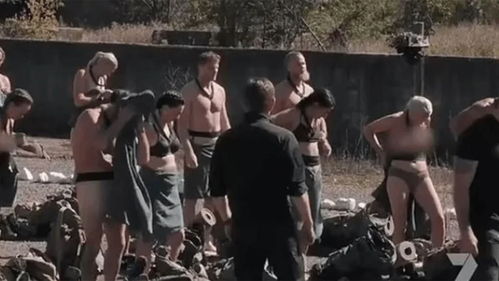 Programda eğitmen olarak görev yapan eski komandolar, yarışmacılara emir verdiğinde yarışmacılar elbiselerini çıkarıyor.