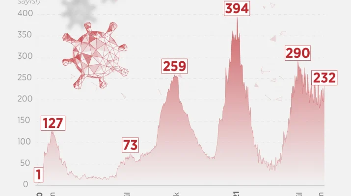 Pandemi nedeniyle 19 Ağustos’ta 216 kişinin hayatını kaybetmesiyle başlayan ölüm rakamlarına baktığımızda ise ölü sayısının kısa birkaç günlük periyotlar harici kalıcı olarak 200’ün altına inmediğini görüyoruz.