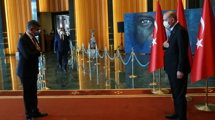 Erdoğan, Türkiye Cumhuriyeti’nin 98. yılı kutlamaları kapsamında Anıtkabir’deki törenin ardından Cumhurbaşkanlığı Külliyesi’ne geçti.