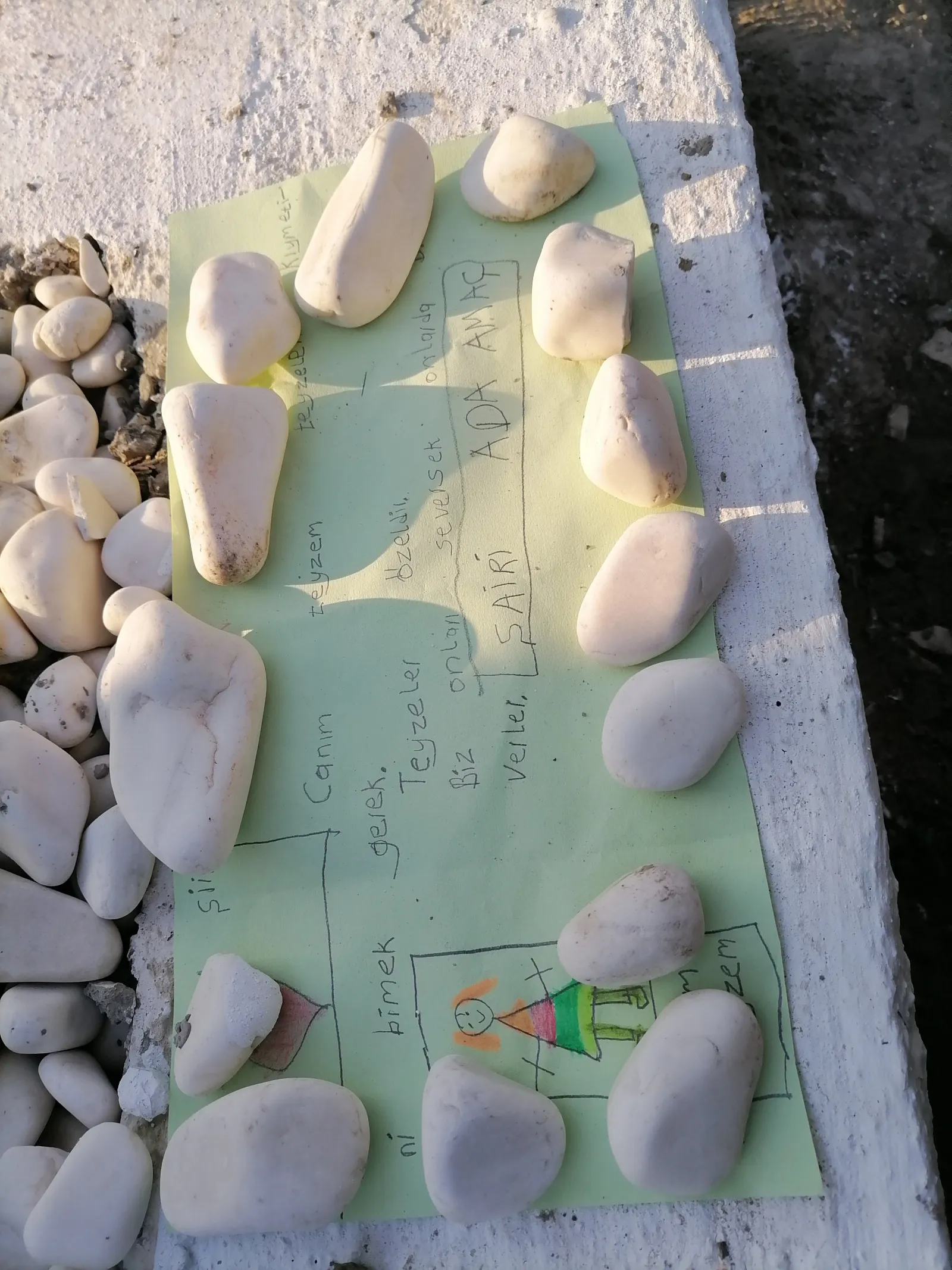 Rıza Bey Apartmanı enkazından 91 saat sonra kurtarılan Ayda Gezgin’in (4) merhum annesi Fidan Keskin Gezgin’in (40) mezar taşına ise bir çocuk tarafından not bırakıldı. Merhum Gezgin’e “Teyze” diye hitap eden Ada Amaç isimli çocuğun, “Canım teyzem; teyzelerin kıymetini bilmek gerek. Teyzeler özeldir. Biz onları seversek onlar da bizi sever” yazılı kağıda resim de çizdiği görüldü.