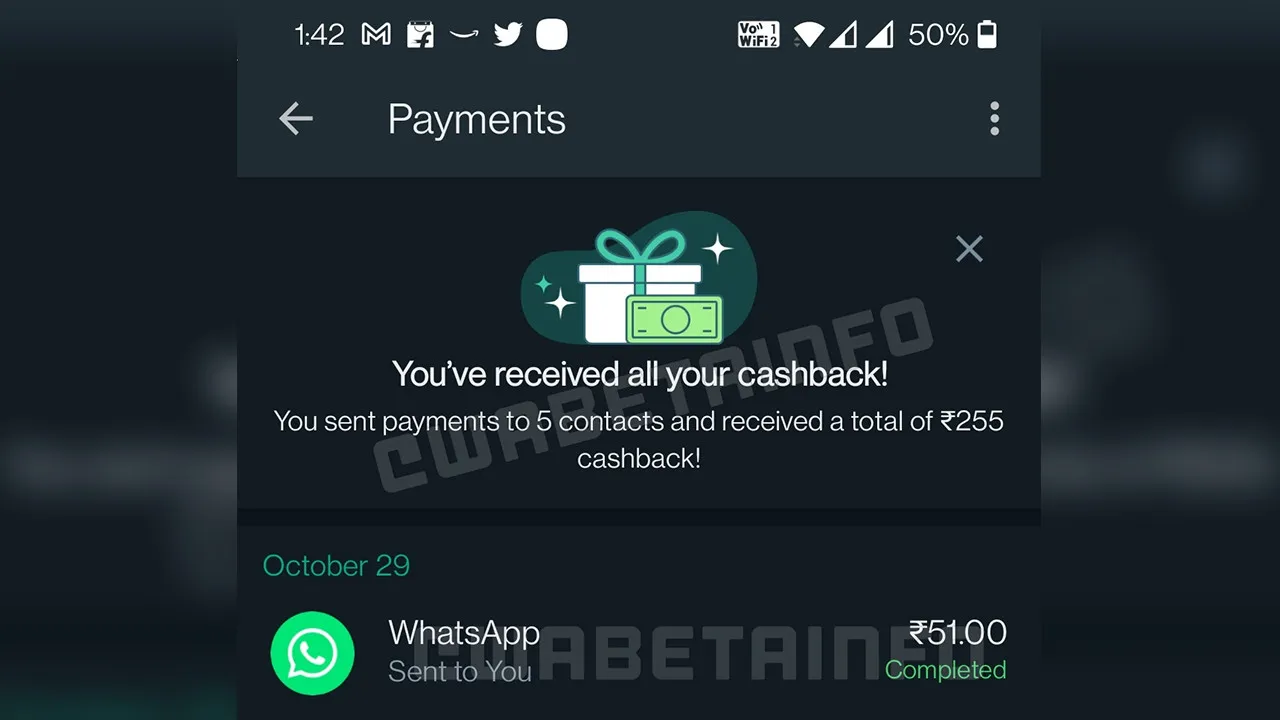 Şirket resmi açıklama yapmadı ancak ekran görüntülerinden elde edilen bilgilere göre kullanıcılar daha önce WhatsApp Payment’ı kullanmayan kullanıcılar bu özelliği ilk kez kullandıklarında kendilerine yaptıkları ödemenin bir kısmı 48 saat içinde iade edilecek.