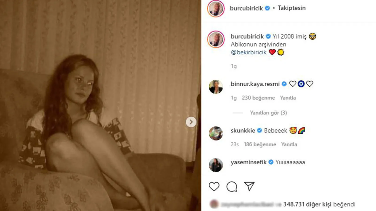 Takipçilerini gençlik yıllarına götüren Burcu Biricik, 19 yaşında çekilen fotoğraflarını “Yıl 2008 imiş.
