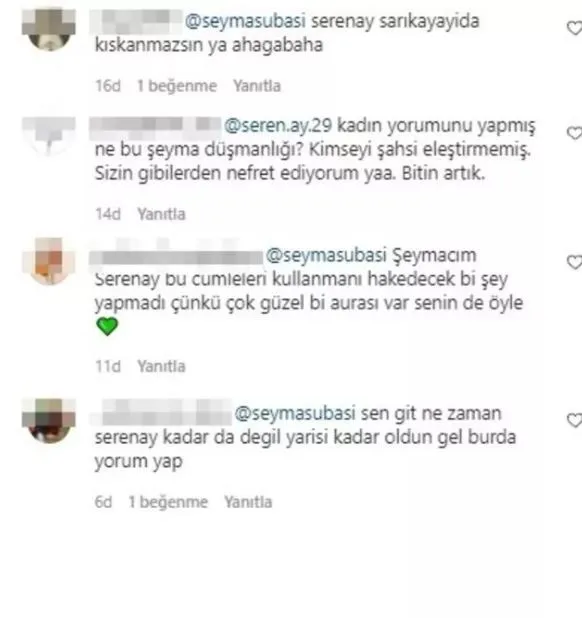 Söz konusu firmanın marka yüzü Serenay Sarıkaya olunca bir anda ortalık karıştı. Şeyma Subaşı’nın yaptığı yorumun altına binlerce yorum geldi. Subaşı’nın, Serenay Sarıkaya’yı kıskandığı iddia edildi.
