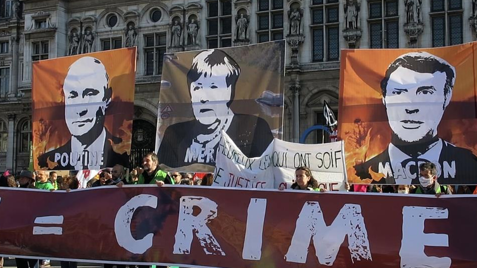 Paris Belediye binası önünde 25 kuruluşun desteğiyle düzenlenen gösteride çevreciler, küresel iklim değişikliğinden ve çevre kirliliğinden sorumlu tuttukları 10 ülkenin liderlerinin posterlerini astı. Fransa Cumhurbaşkanı Emmanuel Macron, İngiltere Başbakanı Boris Johnson ve Almanya Başbakanı Angela Merkel de dahil olmak üzere 10 gelişmiş ülkenin liderlerini küresel ısınmayla mücadeleye yönelik vaatlerini yerine getirmemekle suçlayan çevreciler, liderlerin sera gazı salınımının azaltılmasına ilişkin sözler verdiğini ancak eyleme geçme konusunda “ikiyüzlü” davrandıklarını savundu.