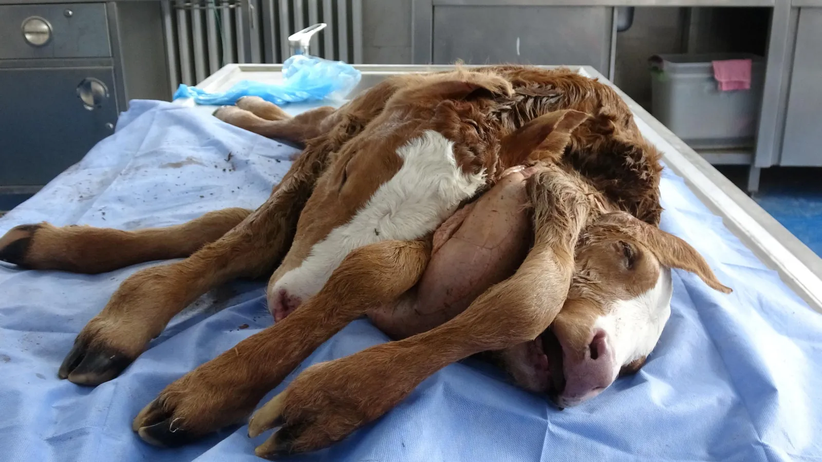 Normal doğumun olmayacağına kanaat getiren veterinerler, ineğin karnındaki buzağıyı sezeryenle aldı. Yaklaşık 2 saat süren ameliyat sonrasında alınan ancak ölü doğan buzağı veterinerleri ve çiftlik sahibini şaşırttı. Buzağının 2 kafası, 6 ayağı, 2 kuyruğu ve çift omurgası olduğu fark edildi. Buzağı bugün sabah incelenmek üzere Aydın Adnan Menderes Üniversitesi Veterinerlik Fakültesi’ne getirildi. Doktorları da şaşkına çeviren buzağının genetik olarak ender rastlanan bir durum olduğu belirtilerek, sonucun yapılacak otopsiden sonra netlik kazanacağı ifade edildi.