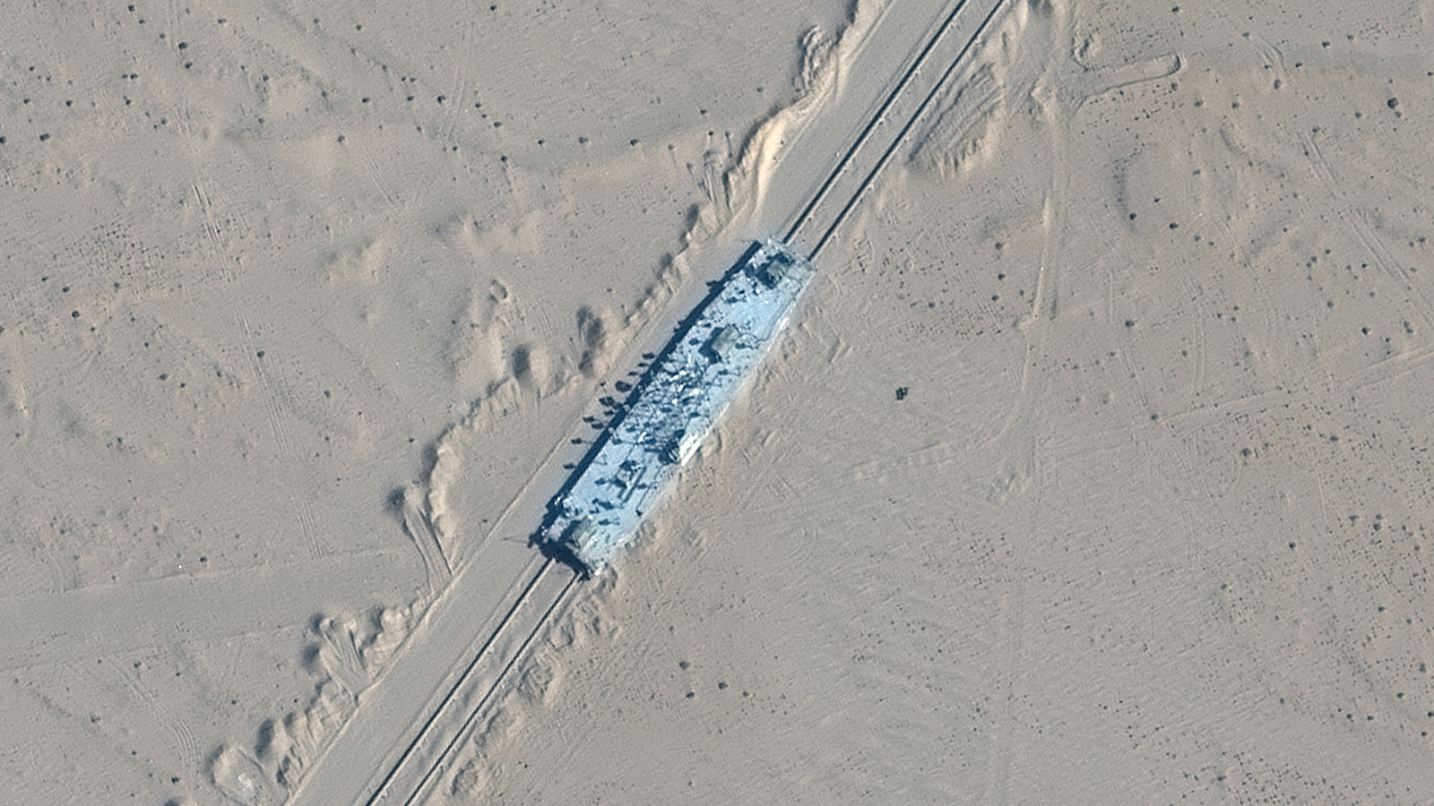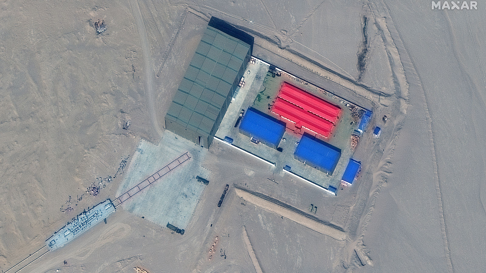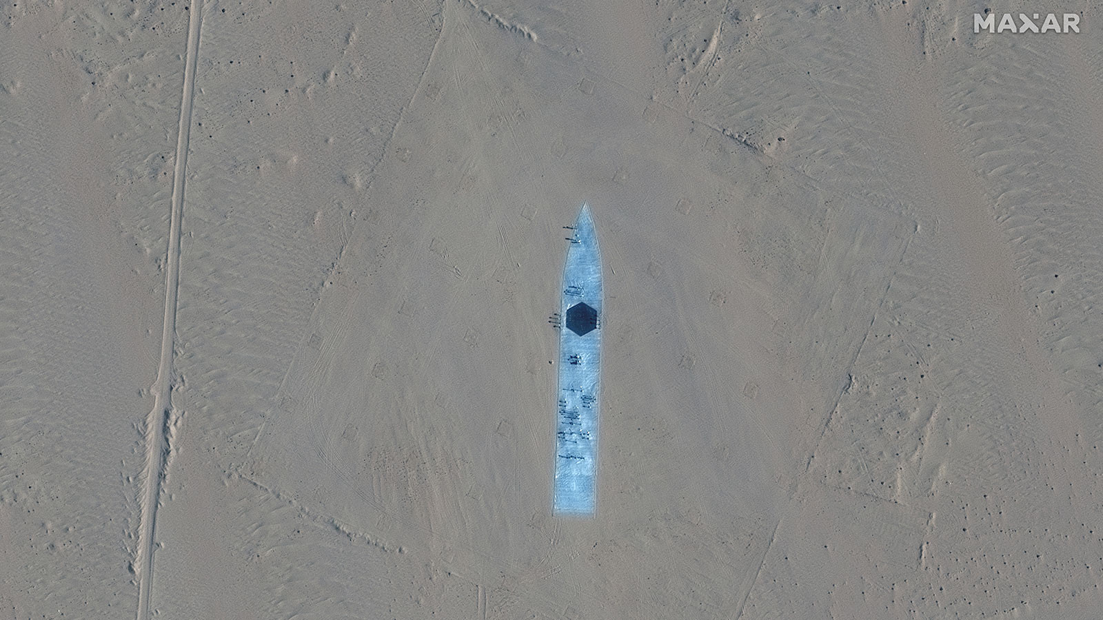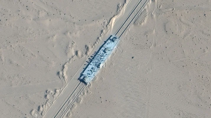 Merkezi ABD‘nin Colorado şehrindeki uydu görüntüleme şirketi Maxar Teknoloji tarafından yayımlanan uydu fotoğraflarında, Çin‘in kuzeybatısında Taklamakan Çölü olduğu ileri sürülen bir bölgede uçak gemisi ve muhrip gemi maketlerinin tren raylarında taşındığı, araziye yerleştirildiği görülüyor.