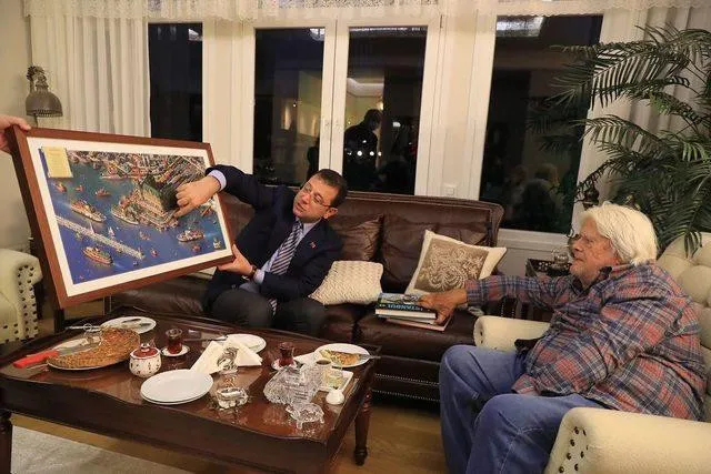 Ekrem İmamoğlu, Arkın’a, sanatçı Tarık Tolunay’ın ‘Haydarpaşa Panorama’ isimli eserini de hediye etti.