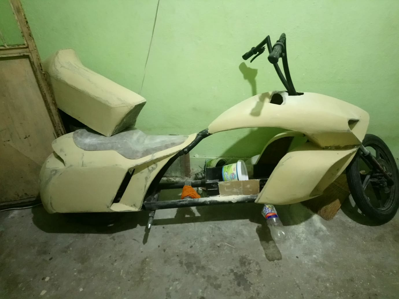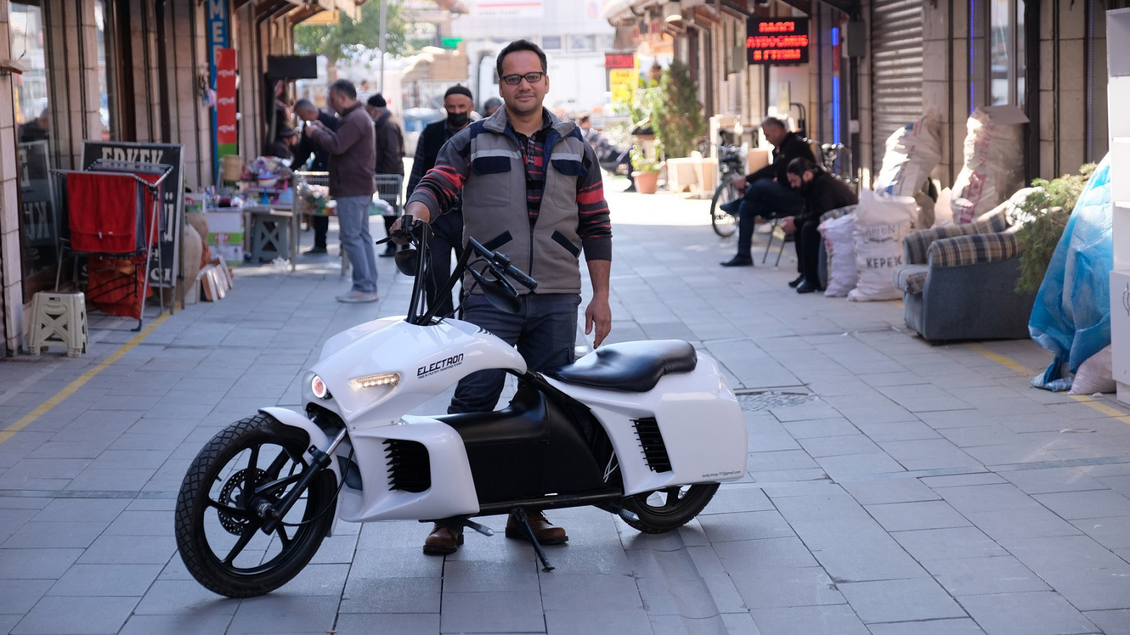 Mustafa Muhammedi, “Hurdacılardan eski malzemeleri topladım, yeni birkaç malzemeyle de tamamladım. Çevredekiler motosikletimi görünce güzel olmuş diyorlar. Çocukluğumdan beri çizim yapıp, bir şeyler tasarlamak benim hobim haline geldi. Bunu yaparken eşim de yardım etti. Hatta bana altın takılarını bozdurup borç verdi. Bir sonraki projem de güneş enerjisiyle çalışan hibrit tekne olacak. Ama tabi malzeme ve bir atölye gerekiyor.