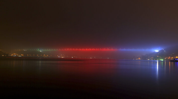 Önemli günlerde renk ve ışık gösterileri yapılan FSM Köprüsü, bu kez Azerbaycan’ın Karabağ Zaferi’nin yıl dönümü için mavi, kırmızı ve yeşil renklerle aydınlatıldı.