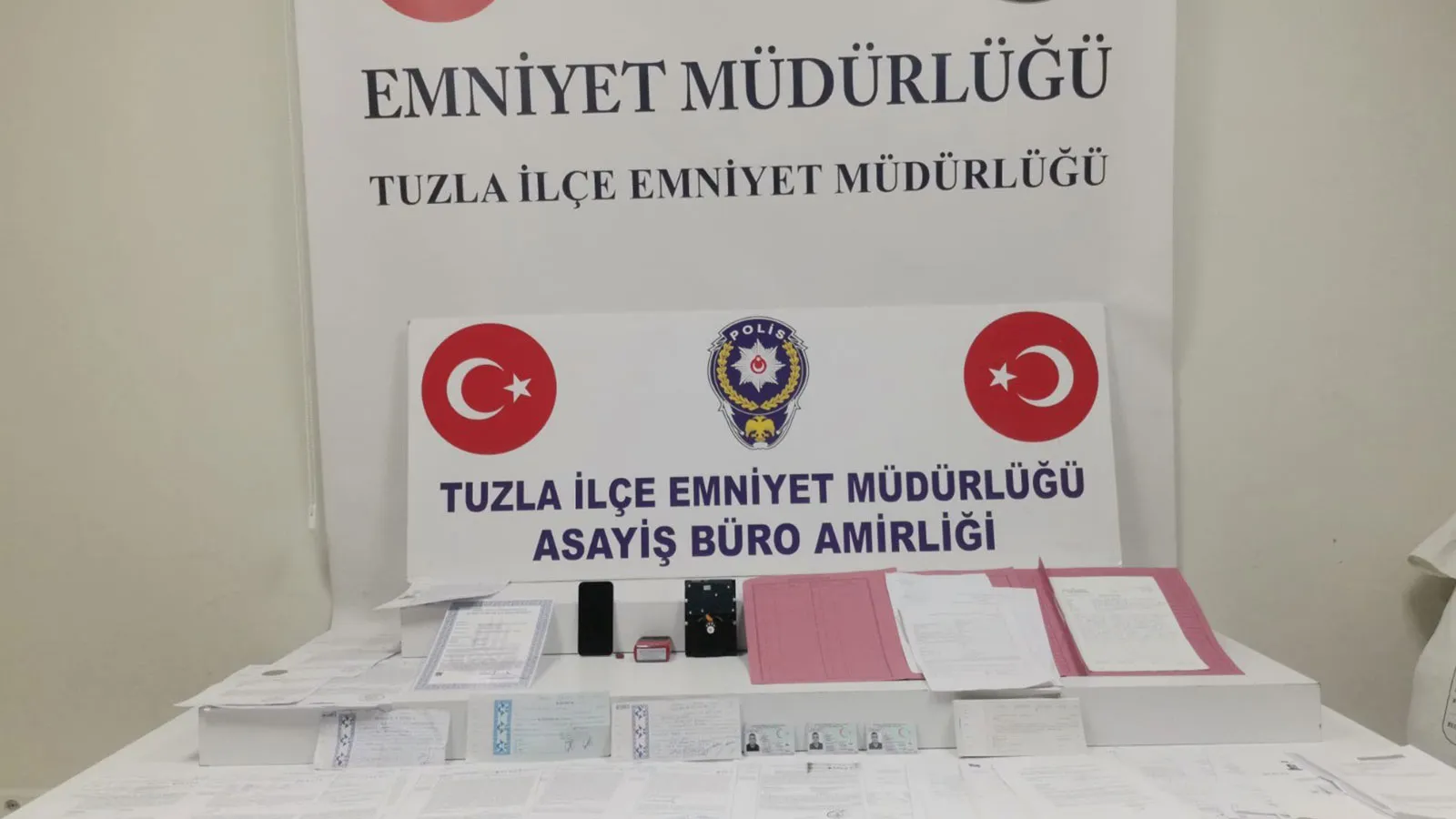 Şüpheli B.T.’nin Kartal Karlıktepe Mahallesinde bulunan ikametinde yapılan aramalarda, 3 adet farklı isimlere ait sahte kimlik belgesi, 14 adet vekâletname, 3 adet dolu senet, 1 adet senet karnesi, çok sayıda farklı araçlara ait trafikten men muhafaza altına alma evrakı, farklı icra dairelerine ait tensip tutanağı, muvafakatname evrakı, banka dekontu ve rehin sözleşmesi, 1 adet cep telefonu, 1 adet USB bellek, 1 adet harici hard disk ve çok sayıda farklı içeriklerde evrak ele geçirildi.