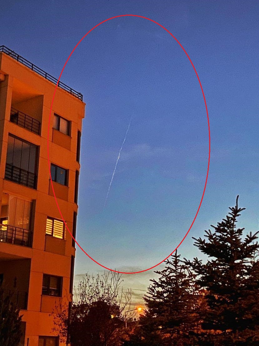 Gökyüzündeki ışık hüzmesi, gören herkeste “Acaba meteor mu?” sorusunu akıllara getirdi.