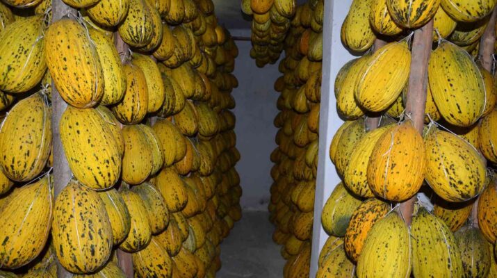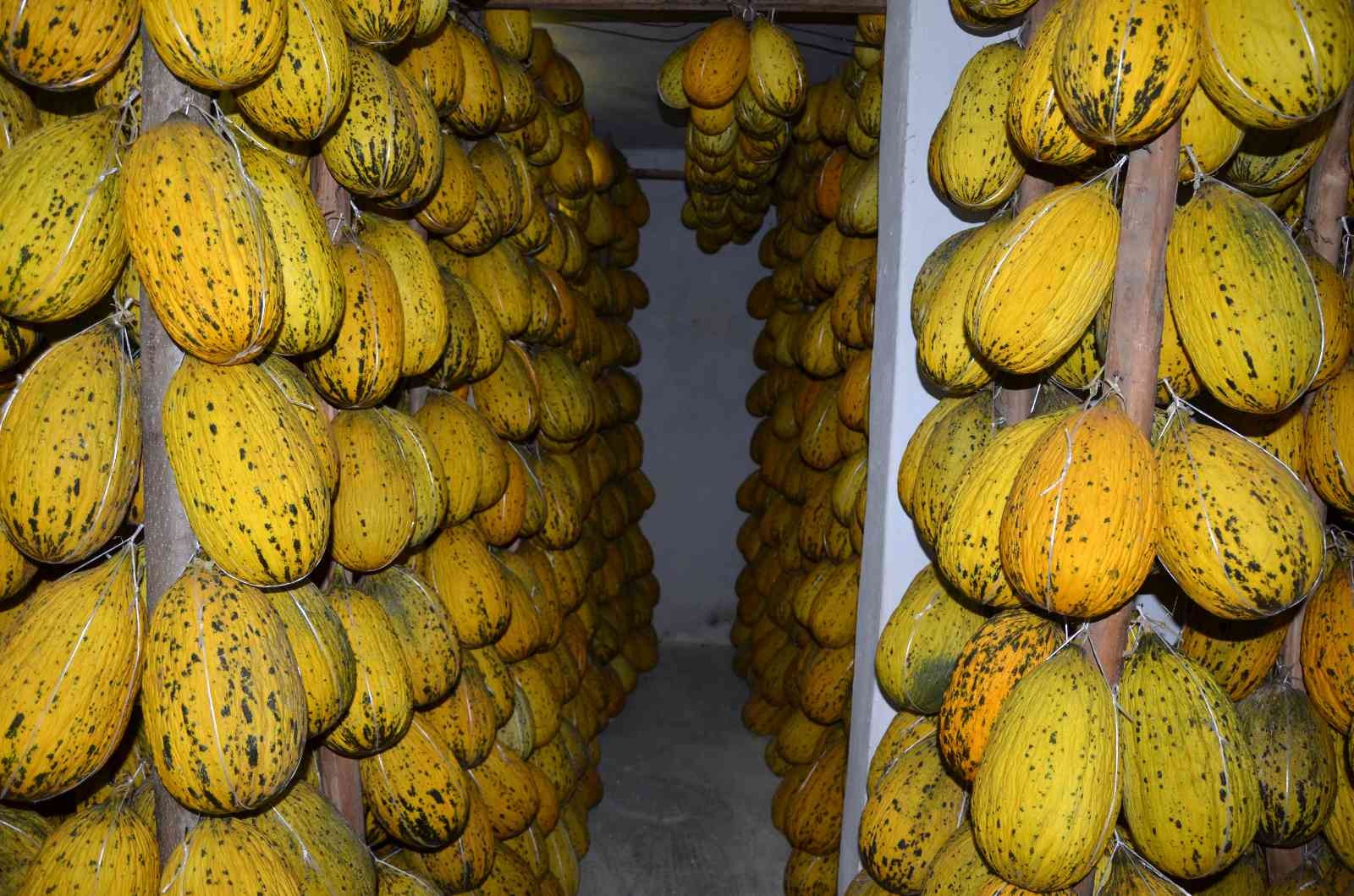 15 Ağustos tarihi itibariyle tarlalardan büyük bir özveriyle toplanan, daha sonra klimalı ve havalandırma sistemiyle sıcaklığı 14 dereceye ayarlanmış depolara getirilerek tek tek dört bir yanından bağlanan kavunlar, büyük uğraşlarla tahta direklere asılıyor. Kış ayları için depolarda askıda kalan kavunlar, Şubat- Mart aylarına kadar alıcı bulabiliyor.
