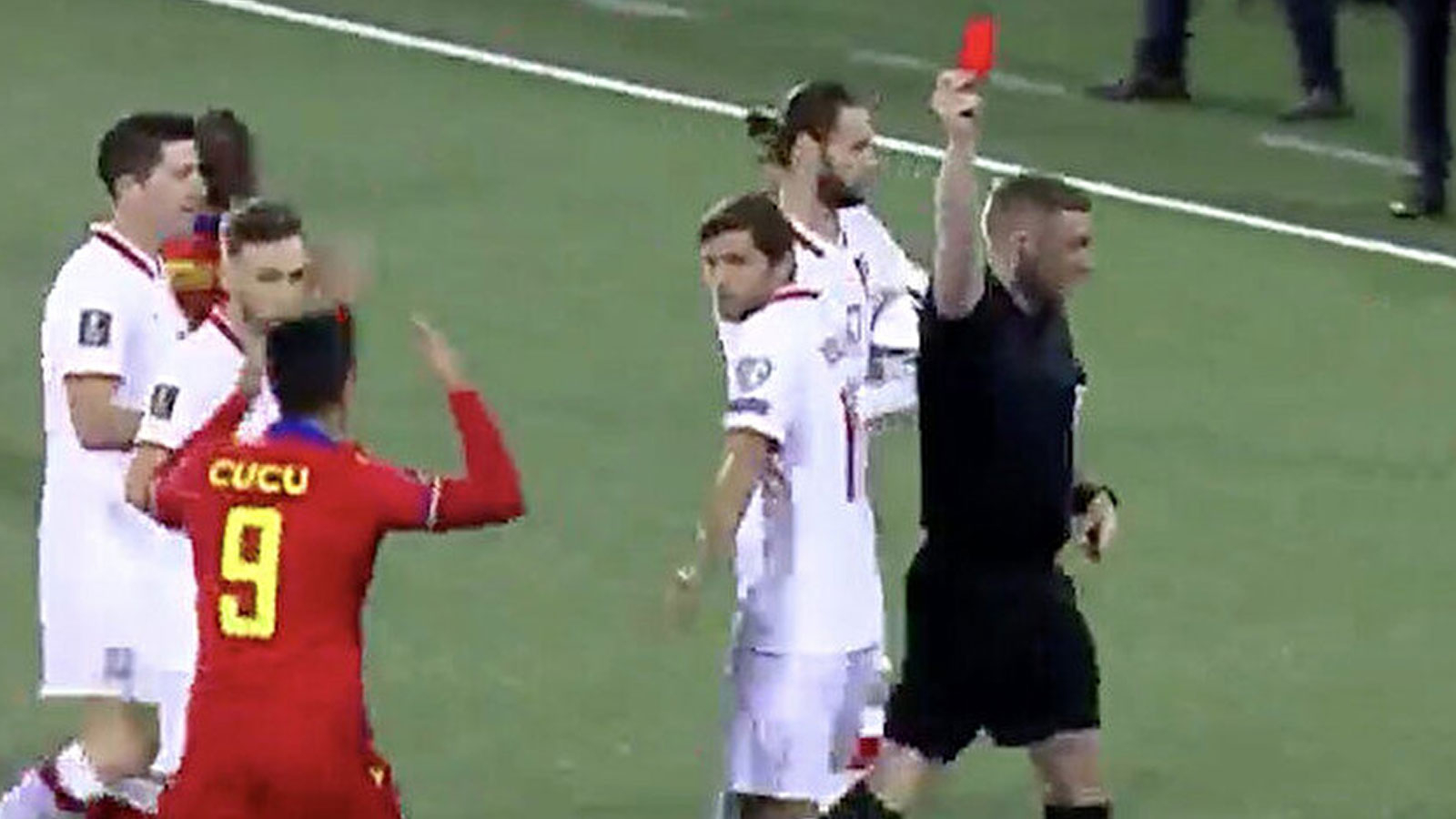 Andorra’nın santrforu Ricard Fernandez (Cucu), karşılaşmanın henüz 20. saniyesinde hava topu mücadelesinde Polonyalı defans oyuncusu Kamil Glik’e attığı dirsek nedeniyle oyundan ihraç edildi. 22 yaşındaki futbolcu gördüğü kırmızı kartın ardından büyük bir şok yaşadı.