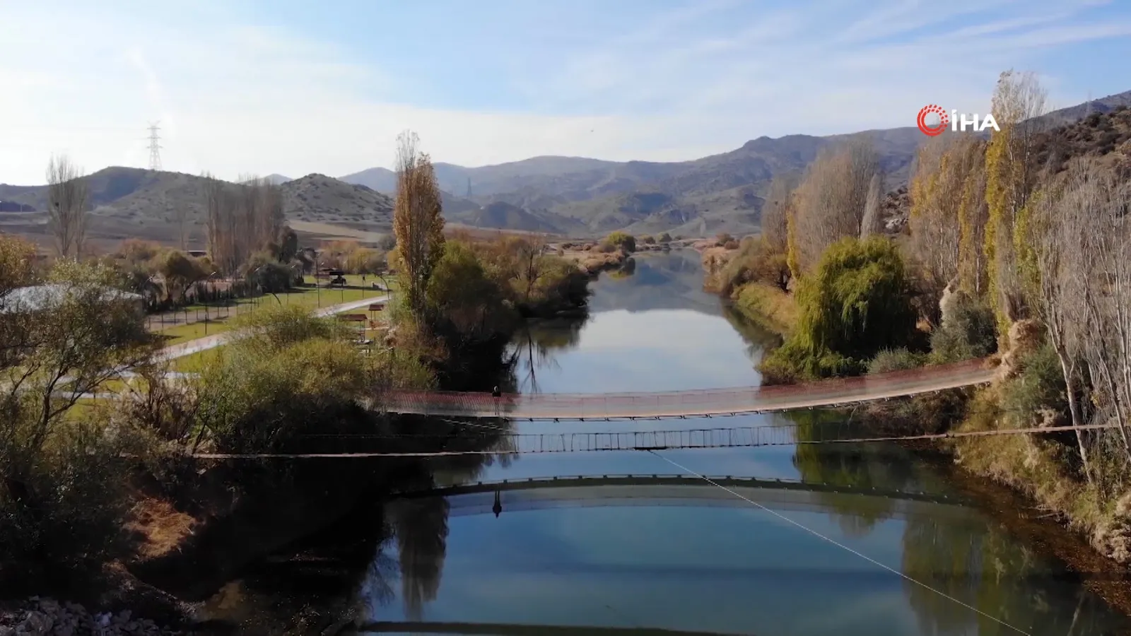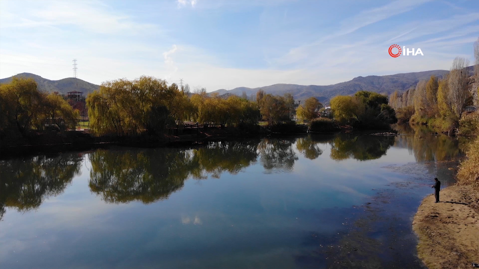 Kızılırmak nehrinin etrafını saran ve sonbahar renklerine boyanan ağaçlar görsel şölen sunuyor.