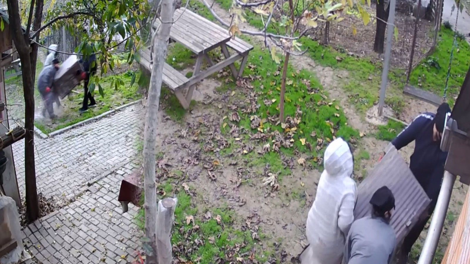 Kamyonetin içinden 2’si kadın 3 kişi, inerek evin bahçesine girdi. Bir süre etrafı kolaçan eden şüpheliler, bahçede duran kömür sobasına yöneldi. 3 kişi kucaklarına alarak güçlükle taşıdıkları sobayı, kamyonetin kasasına koydu. Durumu son anda fark eden ev sahipleri bahçeye çıktı; ancak şüpheliler kamyonetle kaçarak gözden kayboldular. Yaşanan hırsızlık anları ise bahçedeki güvenlik kameraları tarafından kaydedildi.