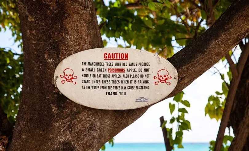 Halk arasında “plaj elması” ağacı olarak bilinen Manişel, (Hippomane mancinella) ciddi tıbbi sorunlara neden olabilirken, Ulusal Sağlık Enstitüleri, sütlü özsuyunun cilt ile temas etmesi durumunda kabarma, yanma ve iltihaplanmaya neden olacağını söylüyor.