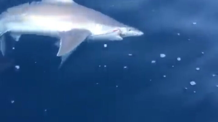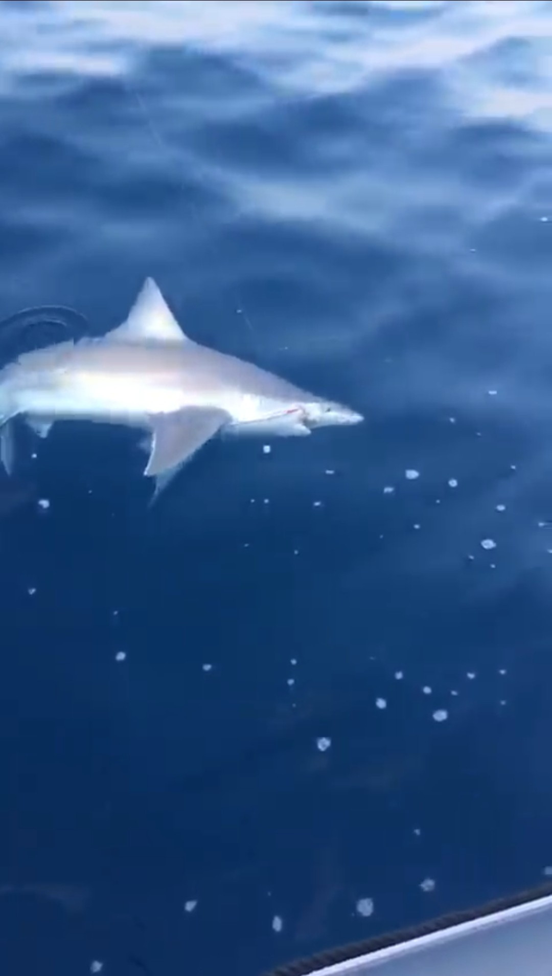 Hatay‘da teknesiyle balık avına çıkan amatör balıkçı, 1.5 buçuk metre boyunda gri camgöz köpek balığı yakaladı.