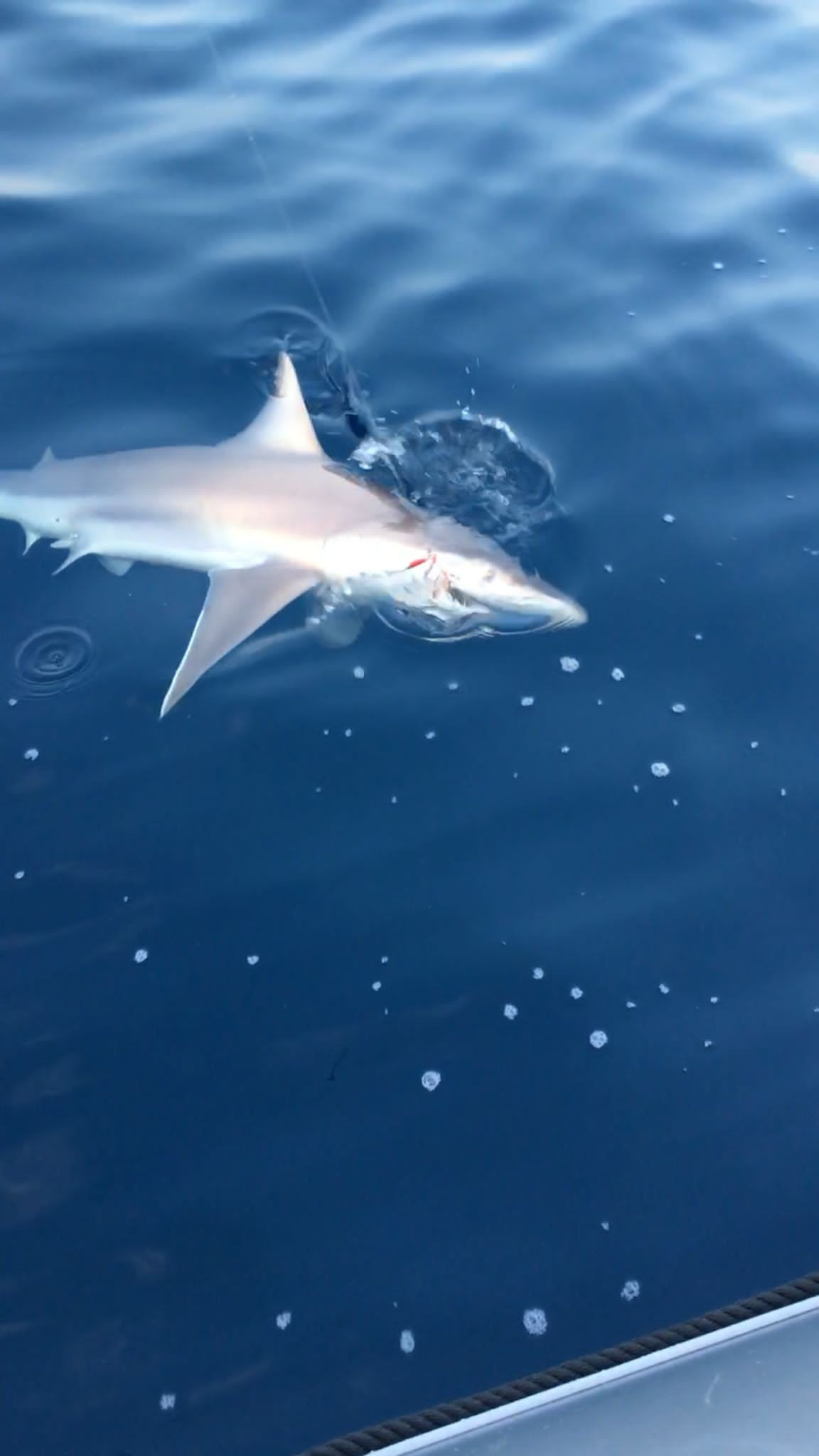 Hatay’ın Samandağ ilçesinde ava çıkan amatör bir balıkçının oltasına 1,5 metrelik köpek balığı takıldı.