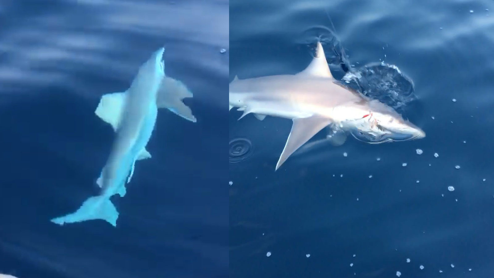 Samandağ sahili açıklarında oltasına takılan köpek balığını görünce şaşırdı. Amatör balıkçı, daha sonra köpek balığını oltadan kurtararak denize bıraktı.