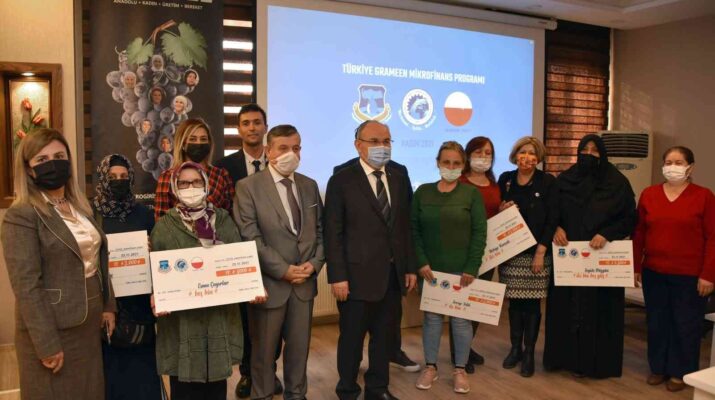 Konuşmaların ardından Manisa’da mikro kredi alarak faaliyet gösteren 10 kadın girişimciye kredi çekleri, Vali Yaşar Karadeniz ve protokol üyeleri tarafından teslim edildi.