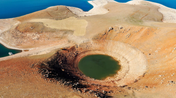 Keban Baraj Gölü’ned balık avına giden Vahdet Gündüz, teknesini kıyıya demirledikten sonra baraj sularını çekildiğini ve kıyıdan yaklaşık 150 metre içerideki bir tepenin arka kısmında içerisinde su bulunan dev bir çukur olduğunu gördü.