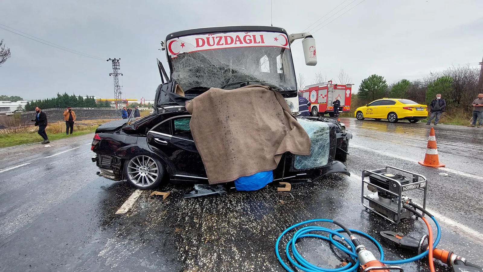 Kazada hurdaya dönen otomobilde sıkışan Özcan Özdemir ile eşi Nalan Özdemir, hayatını kaybetti, midibüsteki 15 kişi de yaralandı.
