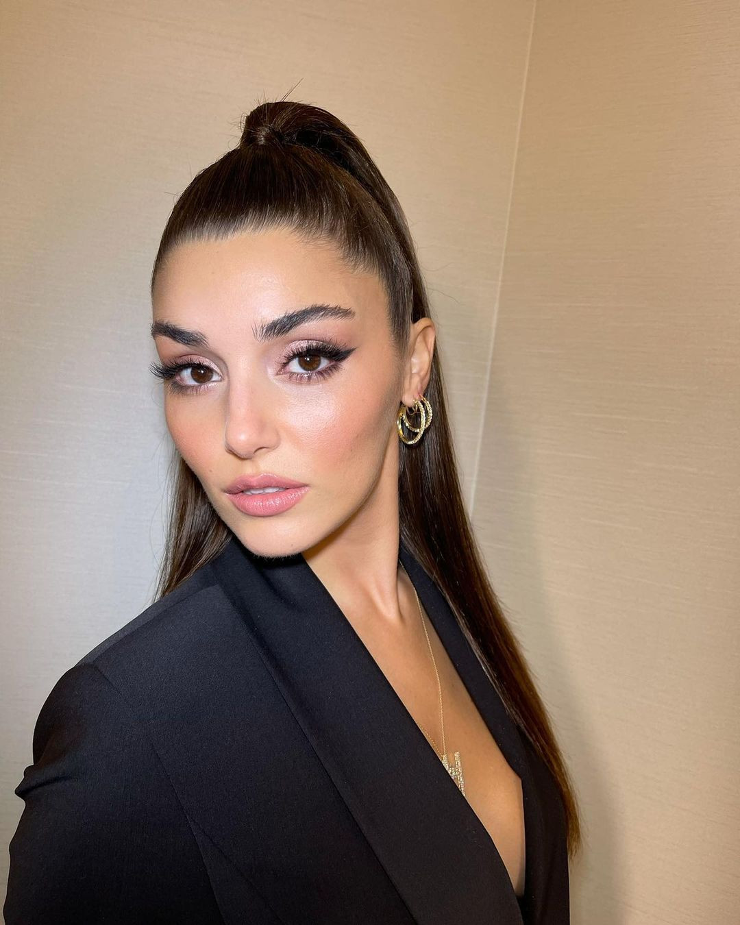 Hande Erçel’in siyah kıyafetiyle verdiği pozlara beğeni yağdı