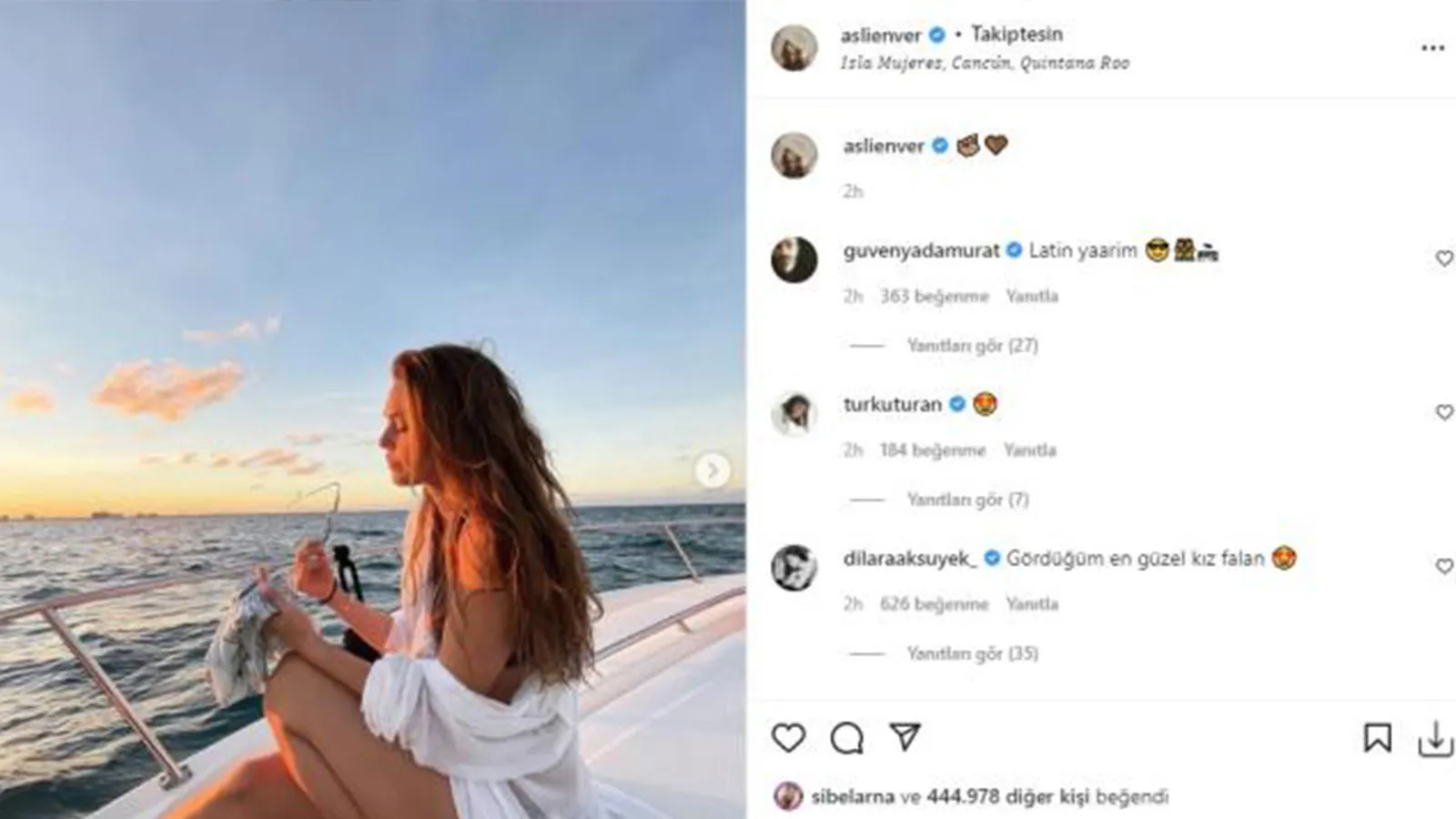 Meksika tatili peş peşe pozlar veren oyuncu, 6 milyon takipçili Instagram hesabından da paylaşım yapmayı ihmal etmedi. Teknede siyah bikinisiyle poz veren oyuncunun Instagram’daki paylaşımı 444 binden fazla beğeni aldı. (Snob Magazin)