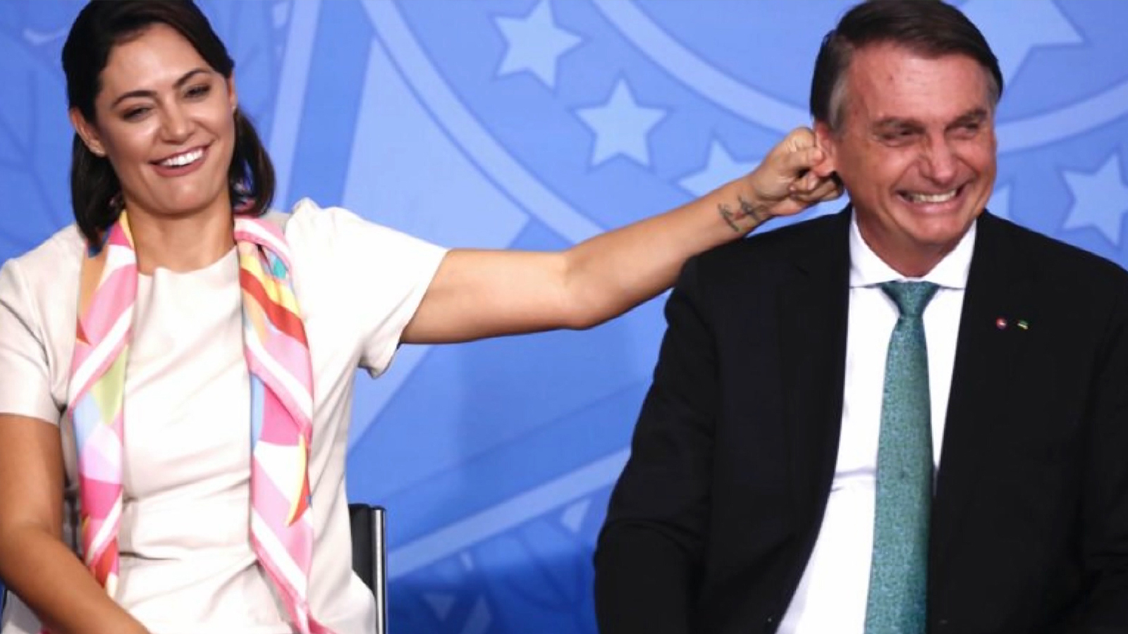 First Lady Michelle Bolsonaro, Devlet Başkanının kulağını çekerken kamerelara yakalandı.