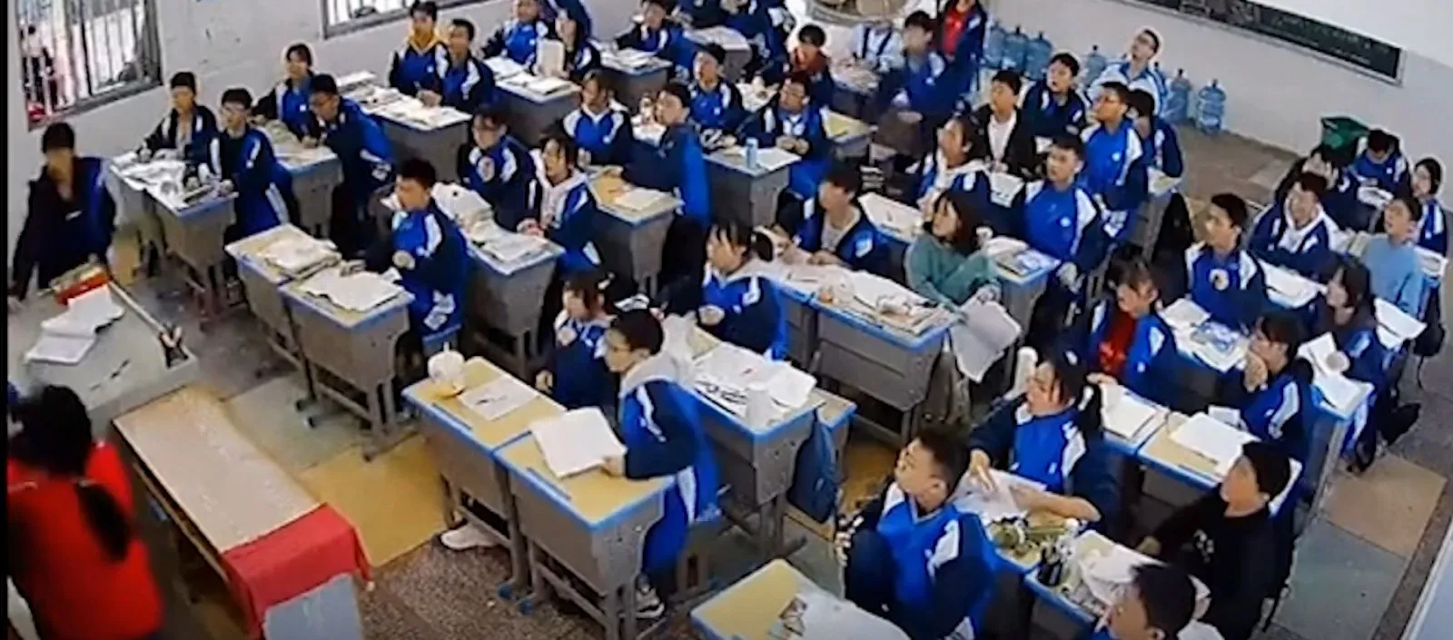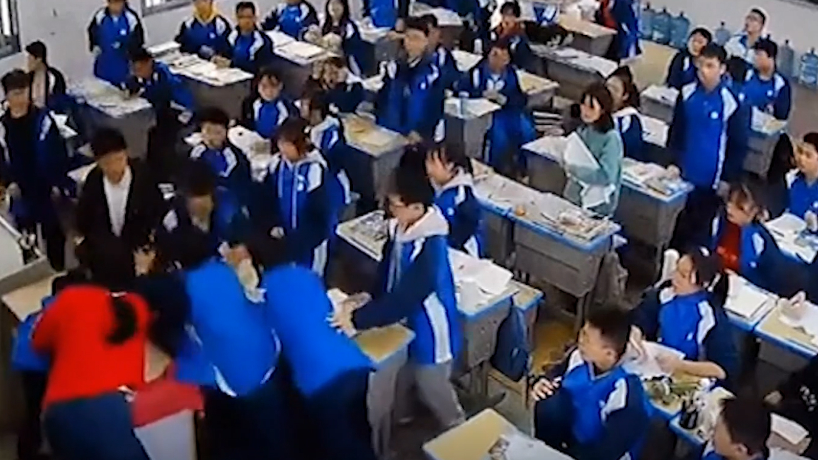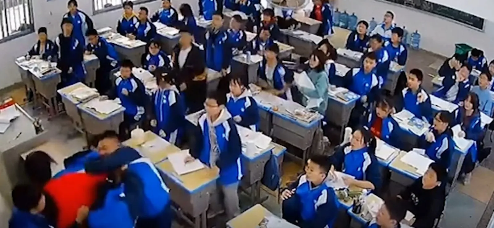 Güvenlik kamerasıyla kaydedilen görüntüler bir öğrencinin kendi masasını yumruklamasıyla başlıyor. Adı açıklanmayan öğrenci daha sonra koşarak öğretmenin yanına gidip yumruk sallıyor. Yaşananları şaşkınlıkla karşılayan öğrencilerden bazıları bir süre sonra kalkıp arkadaşlarını durdurmaya çalışıyor.