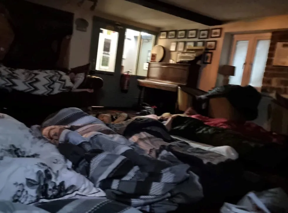 Cuma günü Oasis şarkıları çalan bir grubu dinlemek ve bazısı konaklamak için mekana gelenler henüz pubdan ayrılamadı. Cumartesi sabahı kar seviyesinin 1 metreye yaklaştığı ve yatak odaları pencerelerine kadar çıktığı belirtiliyor.