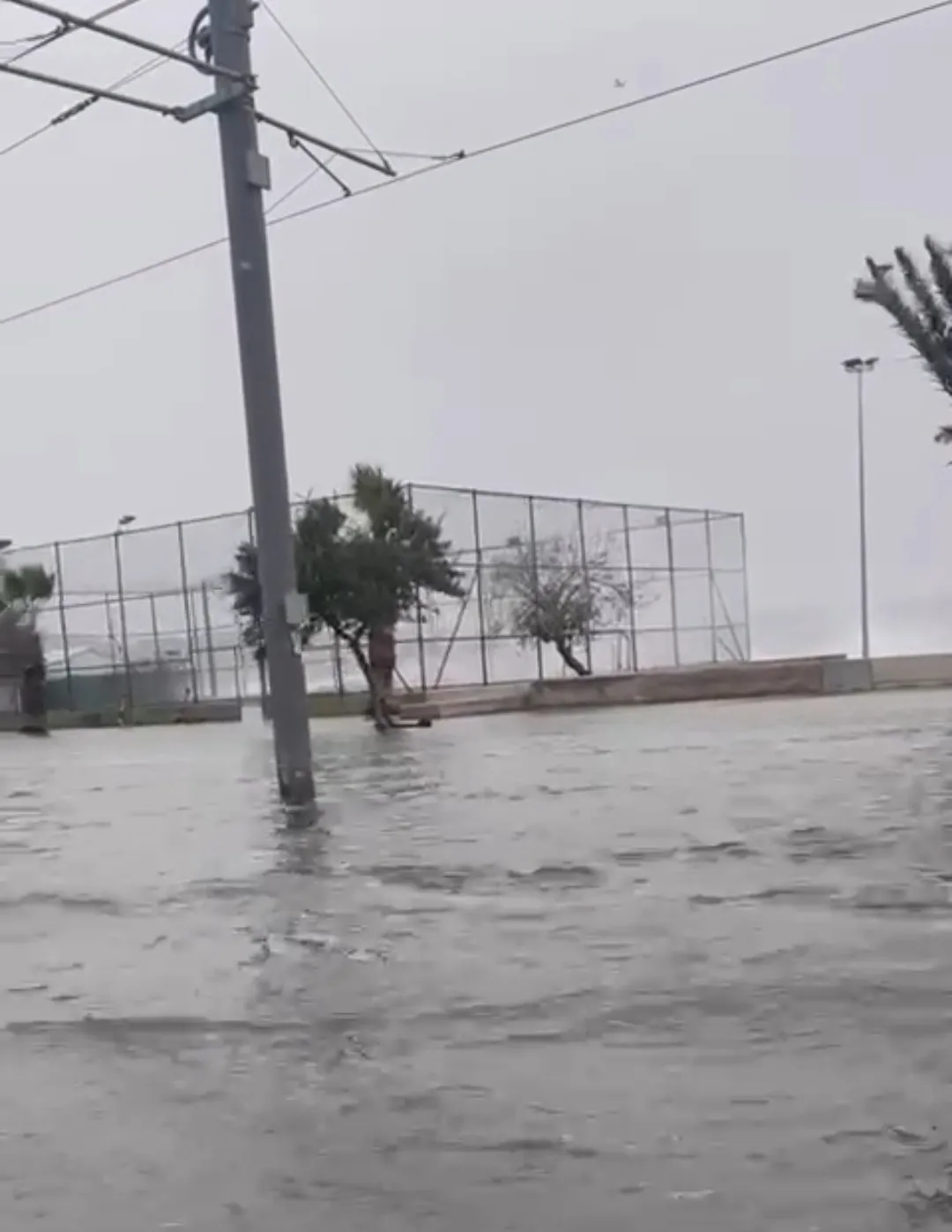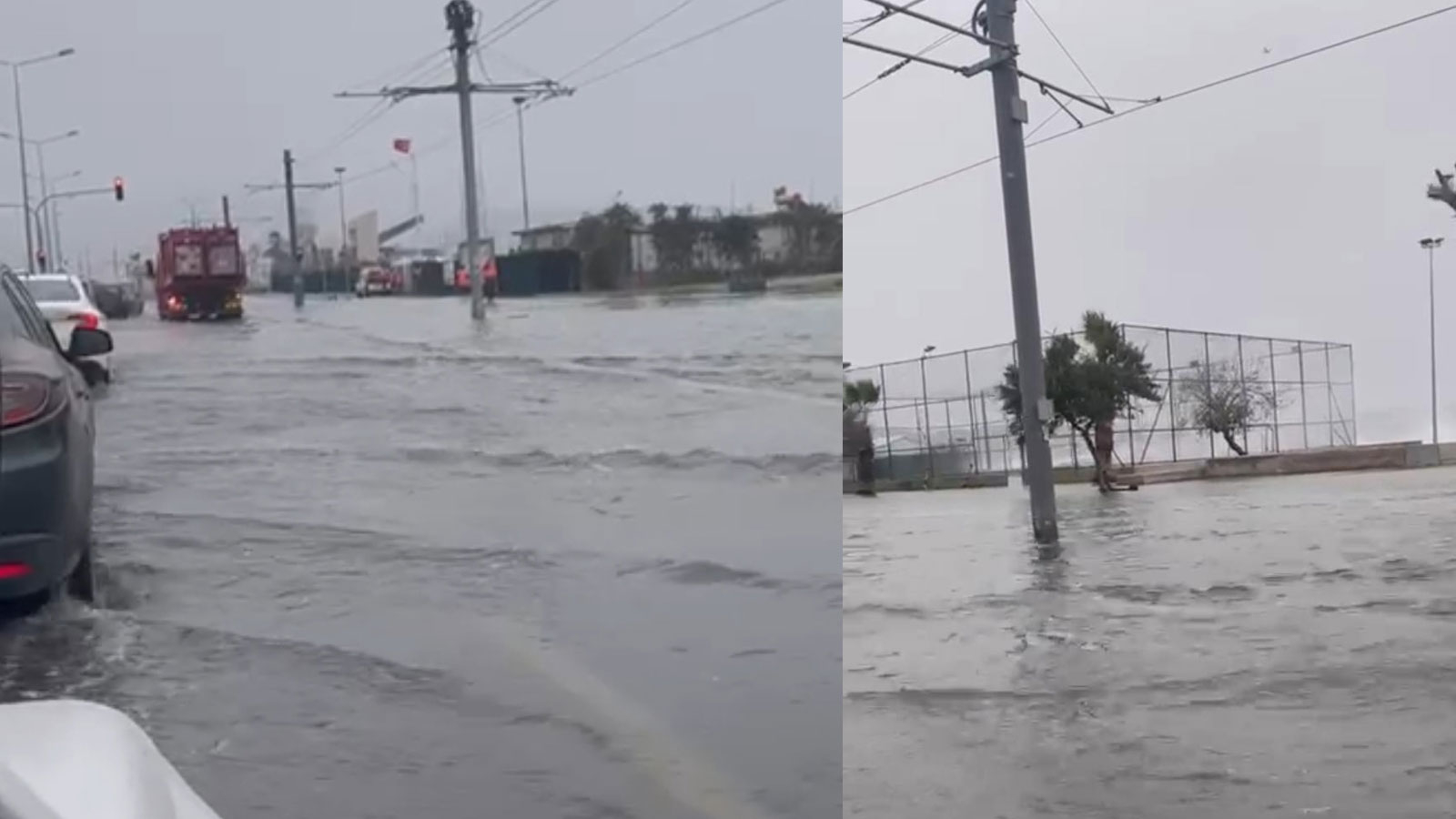 Denizden taşan sular, sahil şeridindeki tramvay hattını da etkiledi.