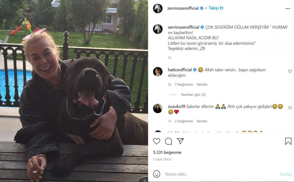 Hurma ile birlikte çekilen karesini yayınlayan ünlü sanatçı, paylaşımına; ”Çok sevdiğim oğlum her şeyim Hurma’mı kaybettim! Allah’ım nasıl bir acıdır bu. Lütfen bu resmi görürseniz, bir dua eder misiniz? Teşekkür ederim…ZR” notunu düşmüştü.