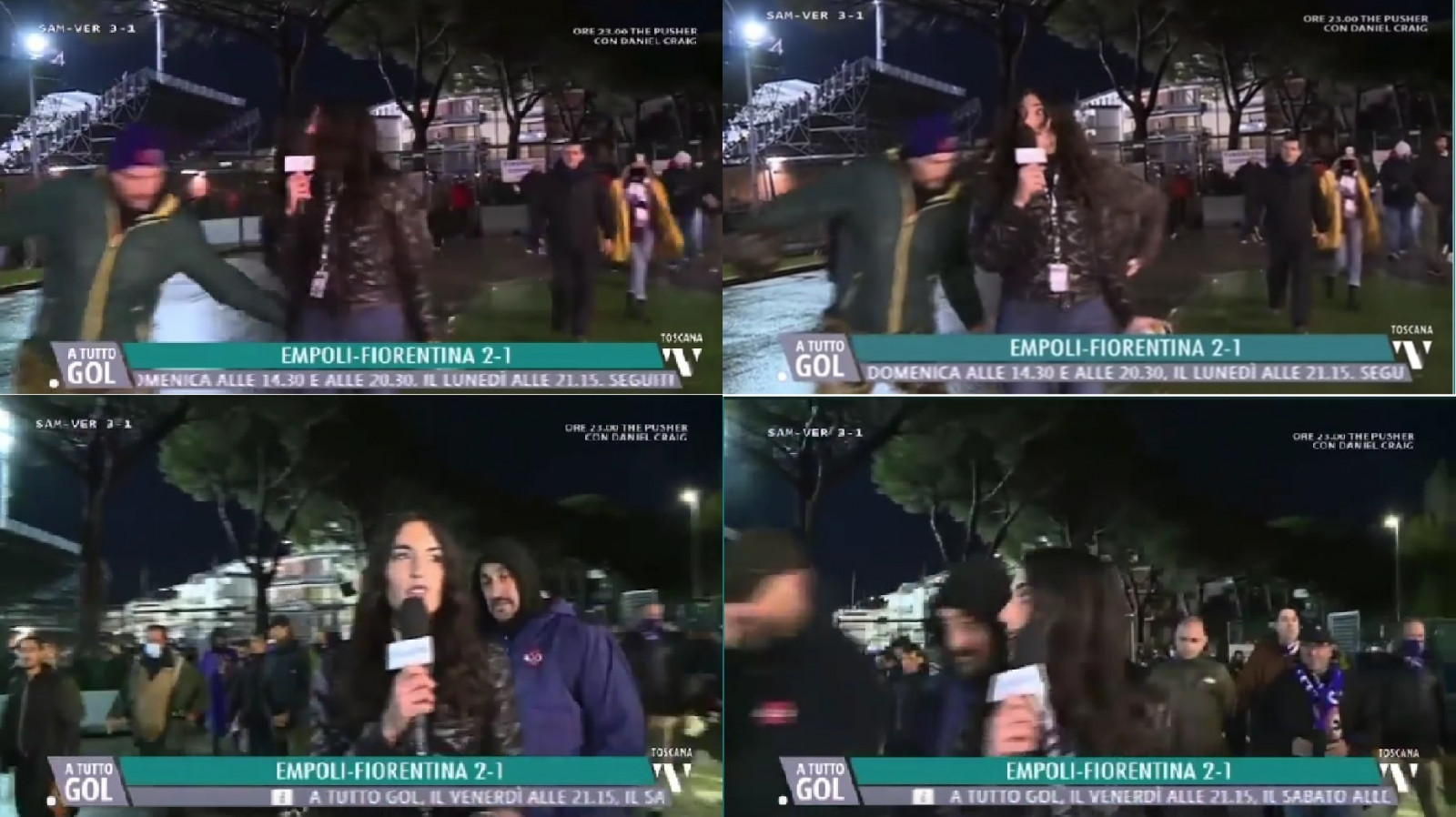 Beccaglia, canlı yayın sırasında bir taraftarın fiziksel olarak tacizinin ardından başka bir taraftarın ise mikrofonu alması ile sözlü tacizine uğradı. Taraftar daha sonra kameraya el hareketi yaparak olay yerinden ayrıldı.
