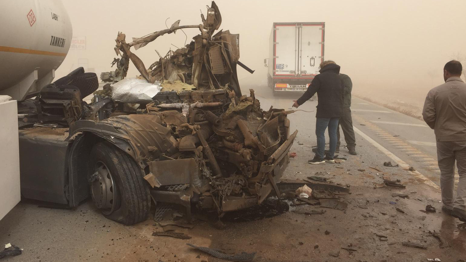 Kum fırtınası Aksaray-Adana karayolunda da etkiliydi. Görüş mesafesi azaldı, yolda çok sayıda kaza meydana geldi.