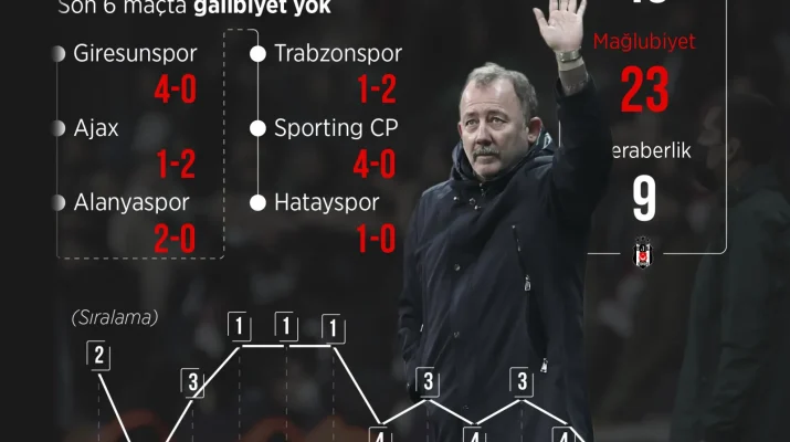 Beşiktaş gerçekten de bu sezon istenen seviyeye ne Avrupa’da ne de ligde ulaşabildi. Kartal, 18 resmi maça çıkarken 6 kere galip geldi, 2 beraberlik aldı ve tam 10 kez sahadan mağlup ayrıldı. Sergen Yalçın’ın, Beşiktaş kariyerinde 77 resmi maçı bulunuyor, aldığı yenilgi sayısı ise 23… Durumun ne kadar vahim olduğunu bu tablo ortaya koymakta.